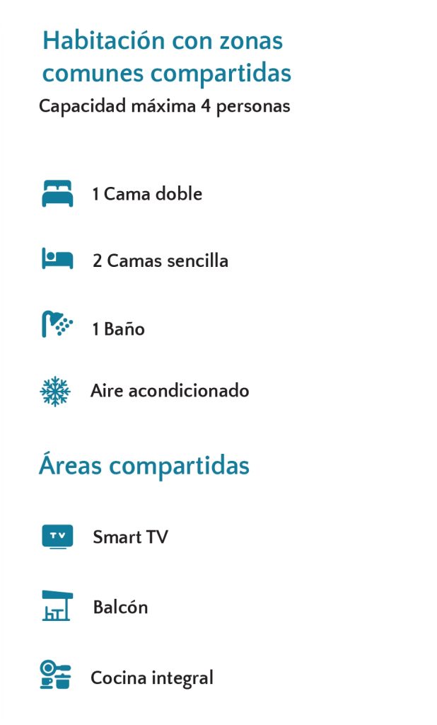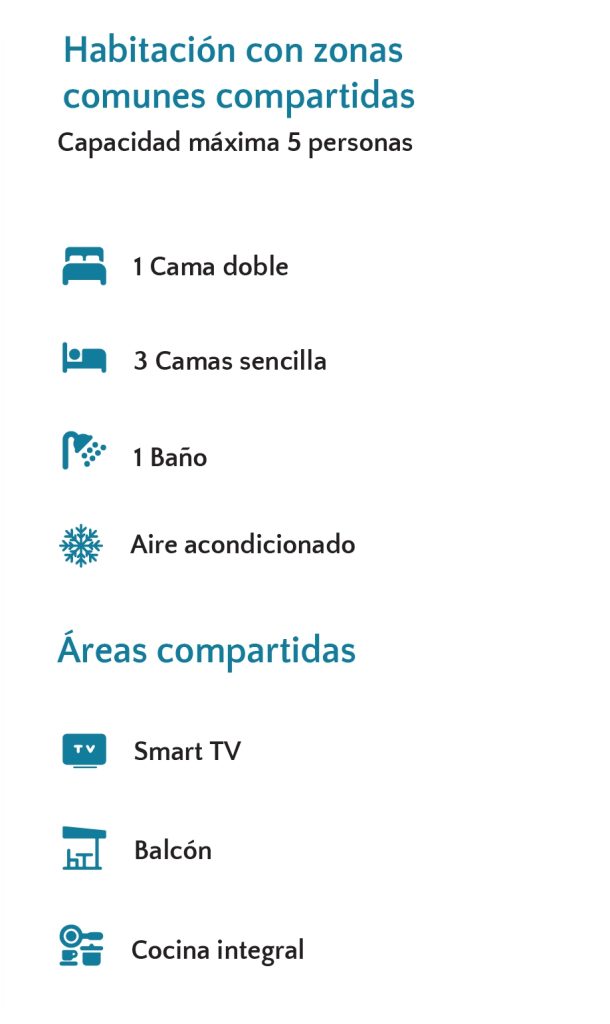 Habitaciones Disponibles en temporada baja. 16 de enero al 12 de abril 21 abril al 16 de junio 8 de julio al 7 de octubre 15 de octubre al 20 de diciembre Reserva solo a través de Whatsappconsulta disponibilidad puentes festivos Precios x noche 1 persona $100.0002 o mas personas $90.000 c/u. habitacion- 5 personas Previous slide Next slide Habitacion - 4 personas Previous slide Next slide habitacion - 3 personas Previous slide Next slide